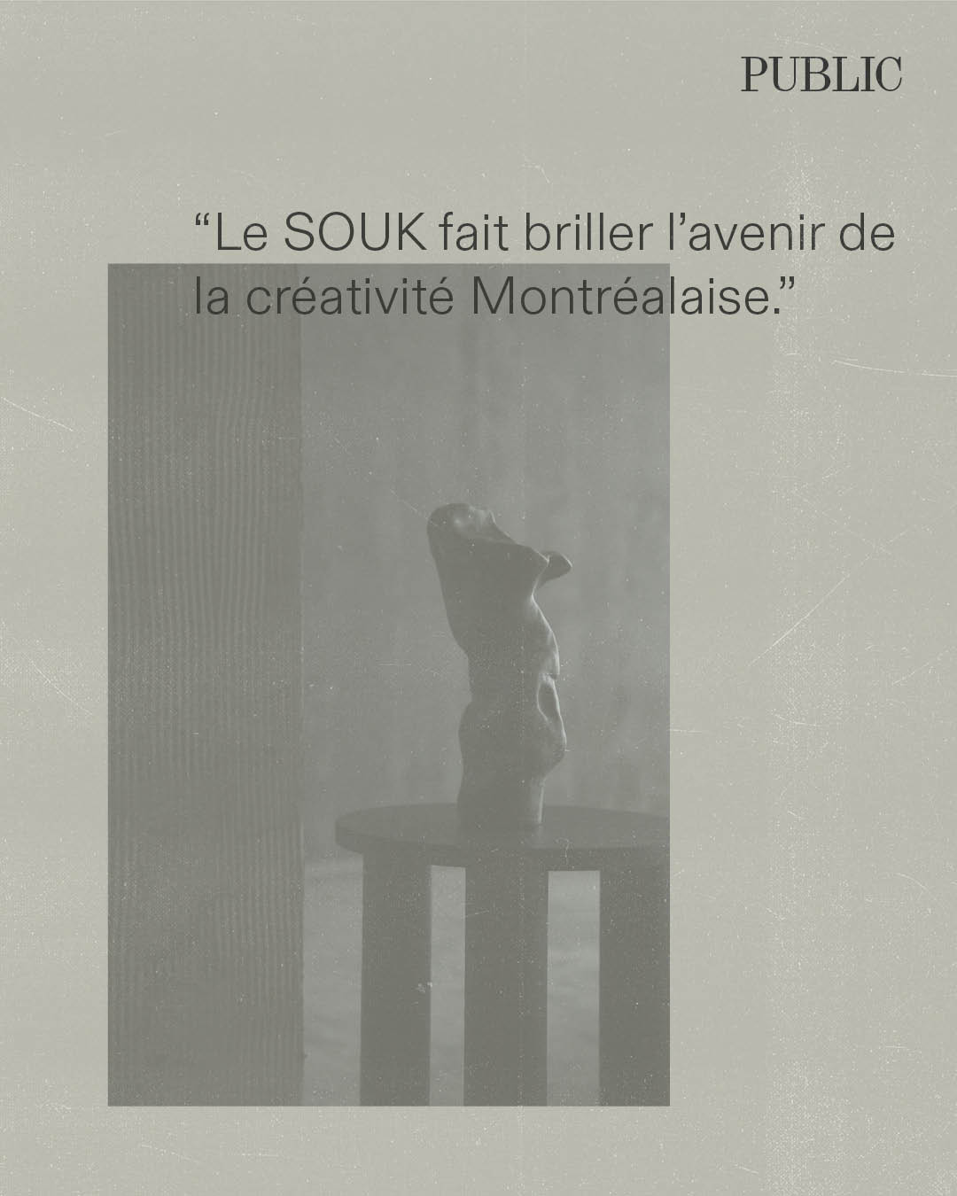 Les commentaires de la communauté, recueillis à travers les entrevues, les sondages et les messages spontanés, ont été essentiels à l’évolution du SOUK. Ces échanges ont guidé notre volonté d’élever la plateforme, de peaufiner chaque édition et de garantir que le SOUK demeure le reflet du pouls créatif montréalais. Ils nous rappellent pourquoi nous faisons ce que nous faisons : cultiver, inspirer et célébrer la beauté du design sous toutes ses formes.