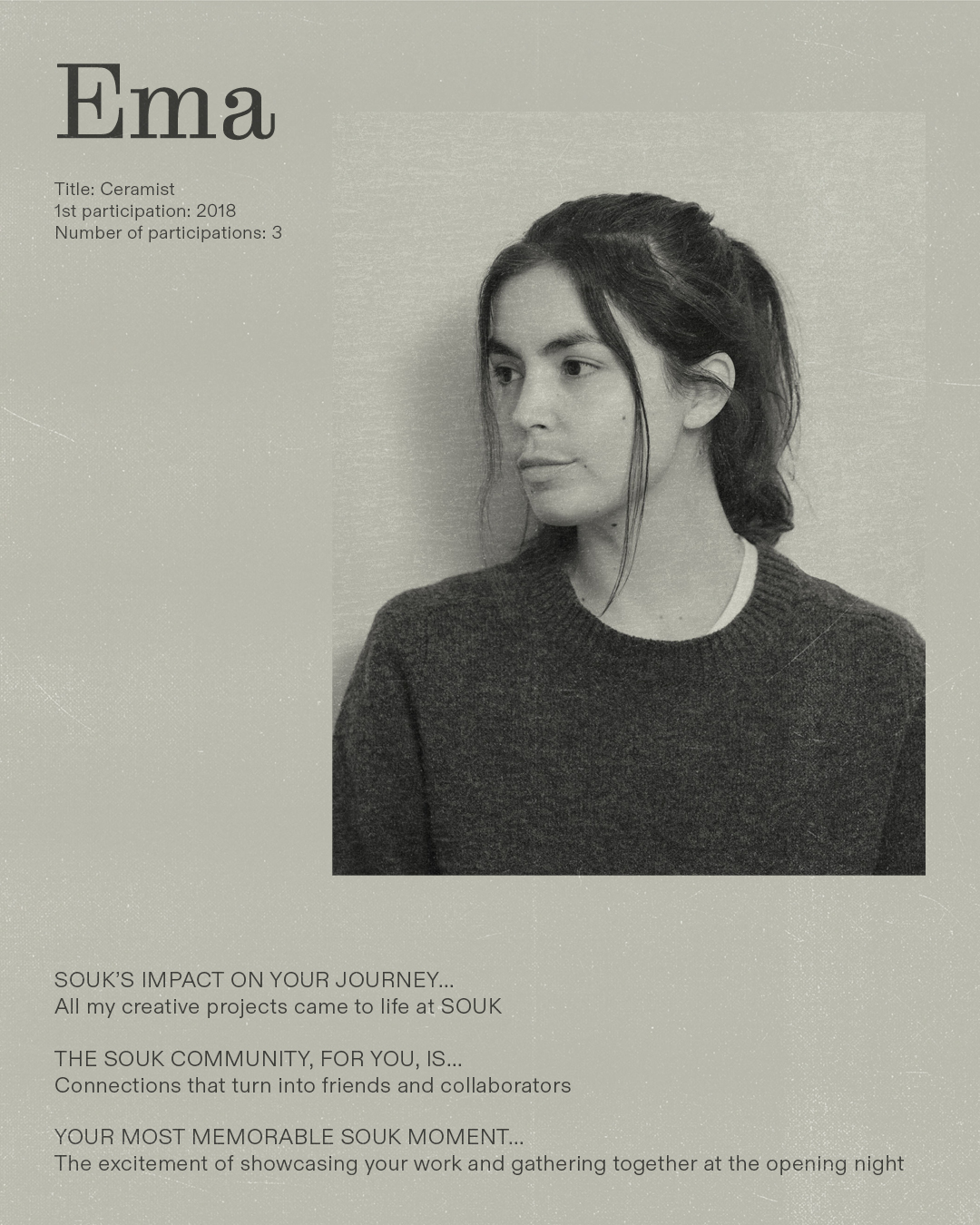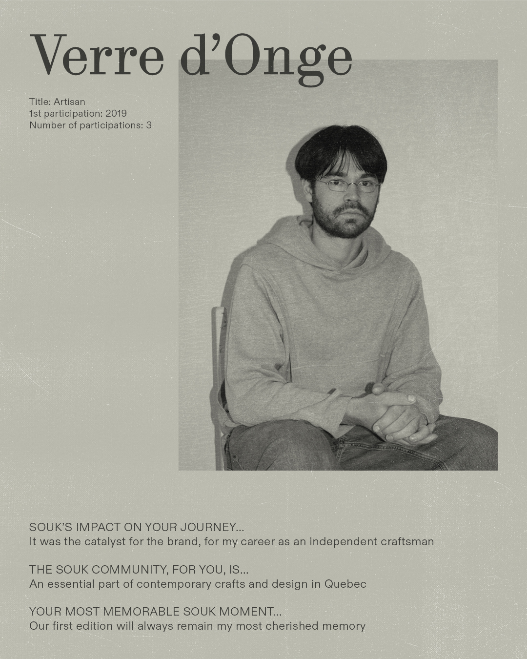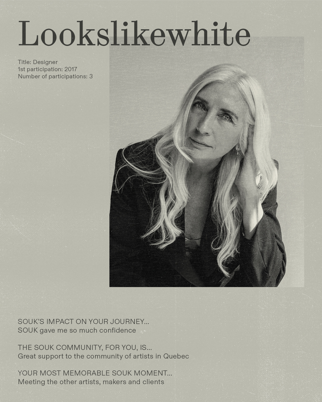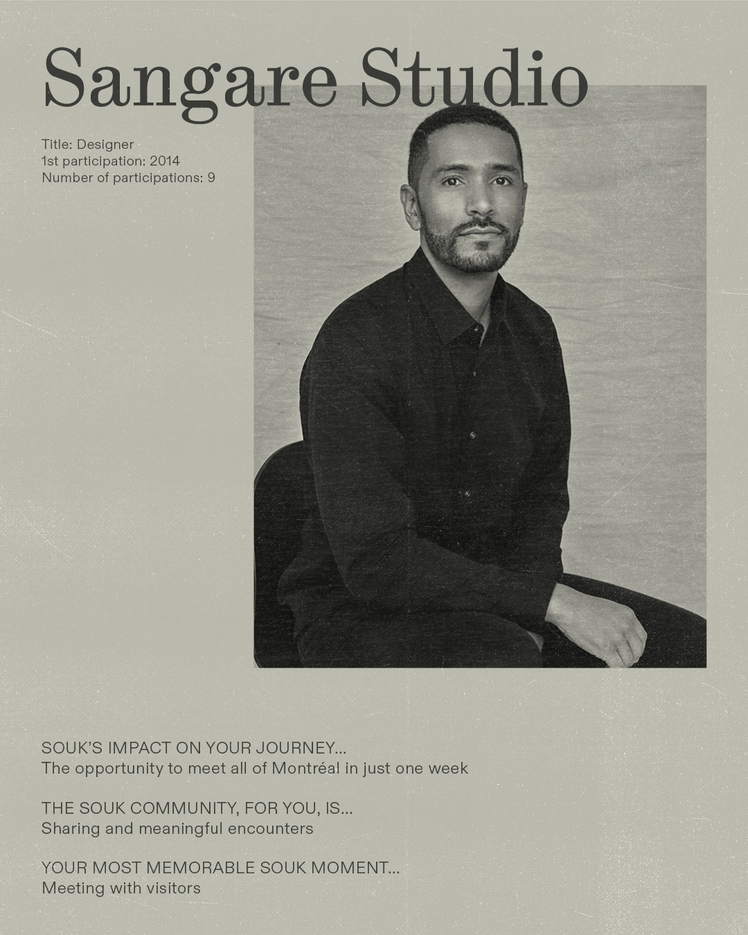 Some appeared for a fleeting moment, while some left a lasting imprint that continues to define who we are. As we mark our 20th edition, we celebrate 20 visionaries—designers who have not only helped shape the SOUK but have also contributed to Montréal’s evolving creative landscape. Their influence reaches beyond their work: they have challenged us, inspired dialogue, and compelled the SOUK to adapt and grow in response to what they brought to the table.