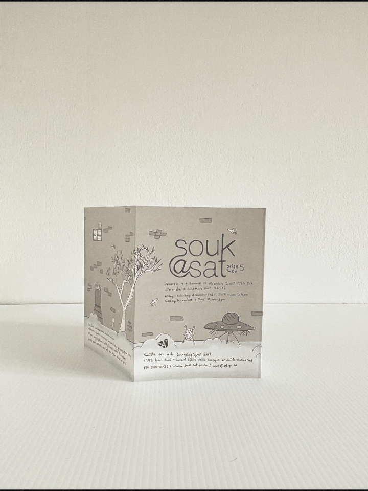 L’histoire du SOUK est née dans les rues de Montréal, bien avant les hashtags et les algorithmes, lorsque la créativité se distribuait à la main. Bien avant les hashtags et les algorithmes, à une époque où les pièces imprimées étaient distribuées à la main, nous concevions et imprimions des flyers de toutes tailles, des petites invitations aux grandes affiches. Tangibles et palpables, ils annonçaient chaque édition et en capturaient l’essence. Chaque flyer portait plus que de l’information : il transportait l’énergie d’un mouvement. Imprimés en petites séries et distribués à travers la ville par des bénévoles, ces bouts de papier étaient essentiels pour rassembler notre communauté créative en pleine expansion.